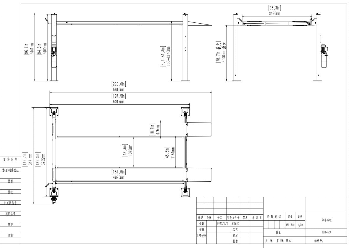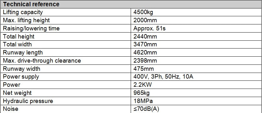 4.5 T 4 Post Car Storage hoist Model TCH HL3700H - Extra Wide Extra High